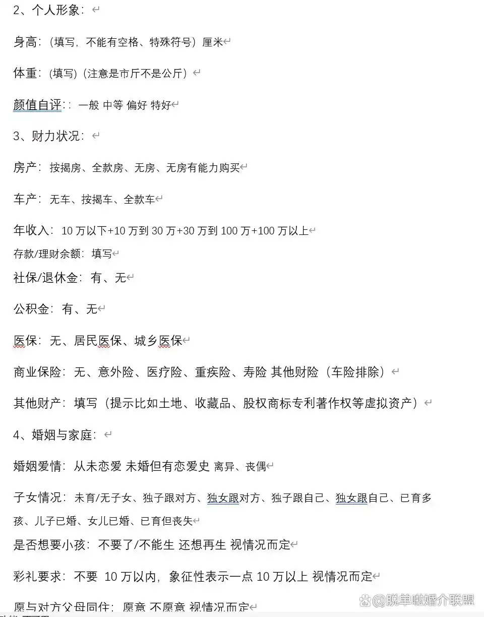 我们调查发现,很多婚介所老板基本上都是靠吹嘘自己多么的靠谱,只要交了钱,给你找到对象十拿九稳。但事实是,你钱一交,他只是把你的情况随便在微信上改个备注,接下来就给你胡乱推荐几个人,完成他的任务,表示他没有骗你。比如,我们有个会员在传统婚介所要求对方离异可以有孩子,但必须是女儿,大约在5-10岁之间……结果是,那个婚介所介绍的乱七八糟,其实他们过时的方法,只能给你匹配到是不同性别的而已。他不但把你的要求早忘得一干二净,当然他也记不得其他会员的情况和要求,所以,最后结果就是胡乱匹配。大家可以看看脱单啦单身匹配系统部分参数,就可以想象传统婚介行业靠笔记本、脑子记录,是不可能实现精准匹配的了。